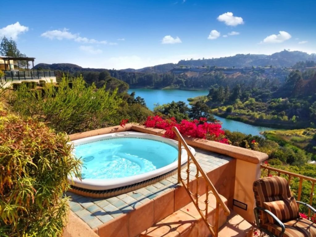 After entering the Iron Gate, you’re whisked away to breathtaking views of the reservoir, Southern California mountains and sun-drenched terraces. The home was meticulously crafted with old world charm and features original saltio tiles, solid wood French doors and custom finishes throughout.