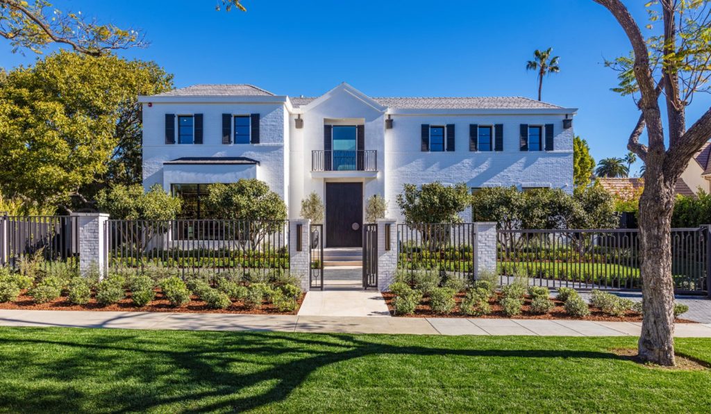 The result is in some aspects a Los Angeleno’s take on a Northeast Colonial: a white-brick mansion with shuttered windows and a Juliet balcony above the solid walnut front door, beyond which a lavish contemporary family home unfolds across three floors.