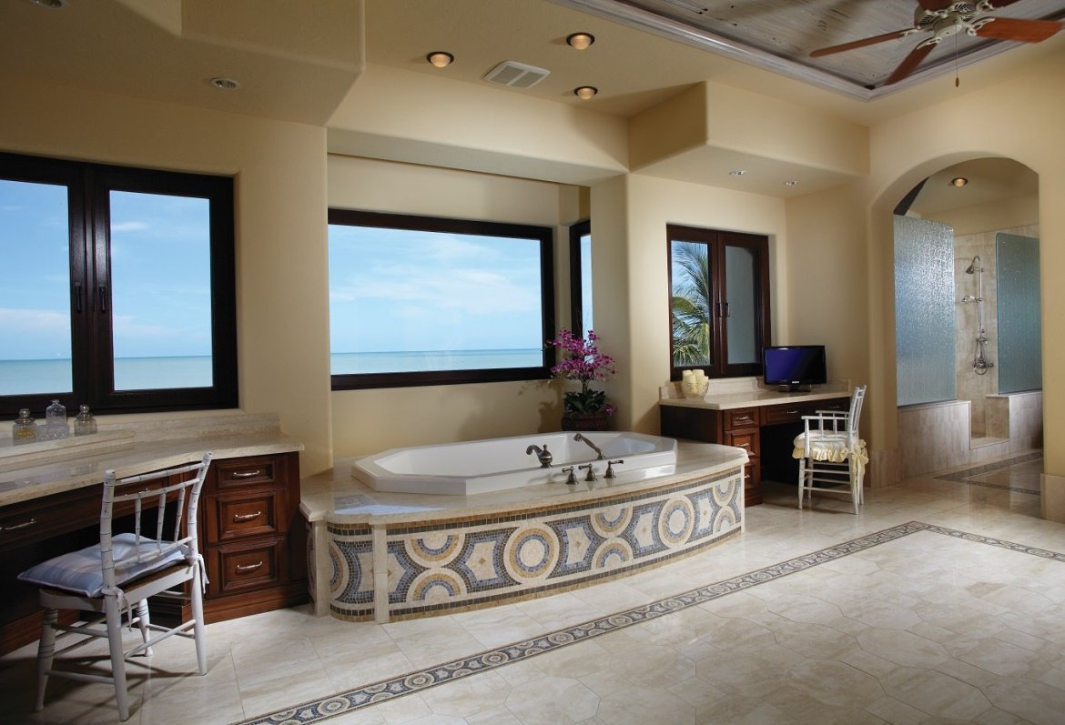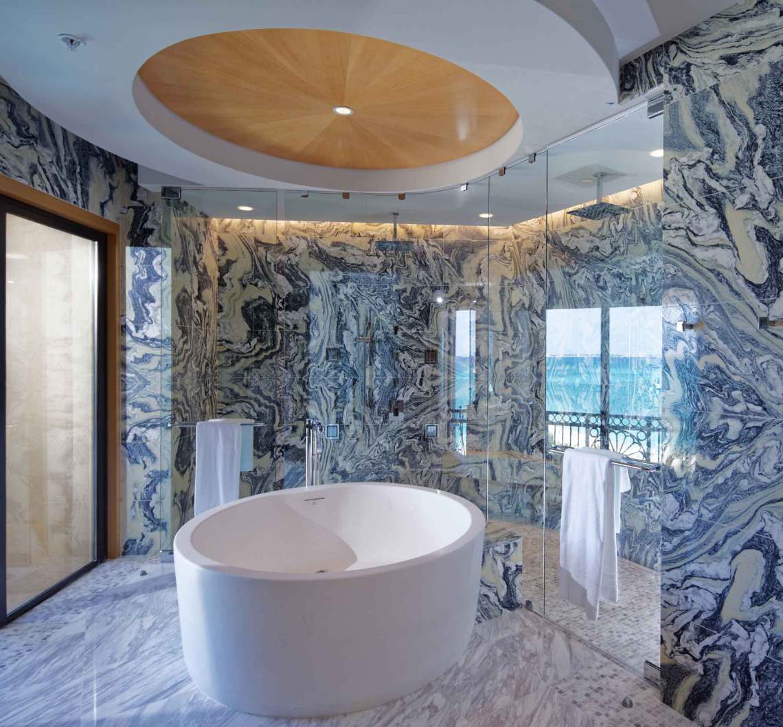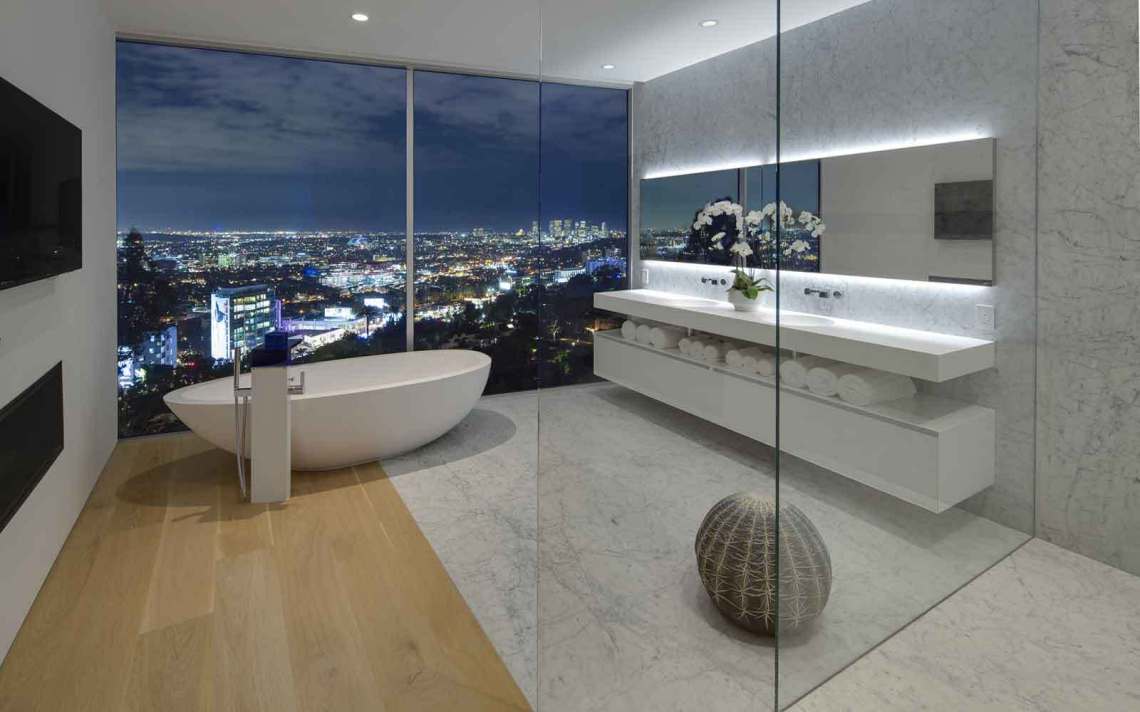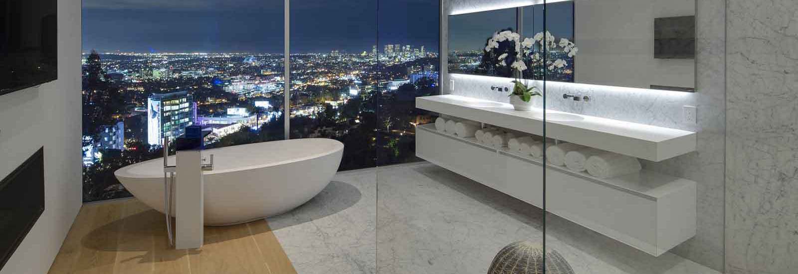 More than any other room in the house, it is the bathroom that lends itself to lavish displays of luxury. Today’s homeowners demand premium bathroom amenities that don’t just rival those of the finest hotels, but are worthy of the world’s top spas. In the 20th century, master architect Frank Lloyd Wright re-introduced the idea of transforming the bathroom from a utilitarian mainstay into a tranquil haven devoted to creature comforts (the ancient Romans had done it for centuries). In the September 1956 issue of House and Home, Wright outlined the home-design techniques that he used in the construction of his Usonian houses: “Punch a hole in the roof of an inside bath; light it from above. … Give the owner a huge bathroom mirror, and light it evenly all around the border.” We’ve come a long way since 1956, as this collection of pleasure palaces suggests. Wright would be pleased.