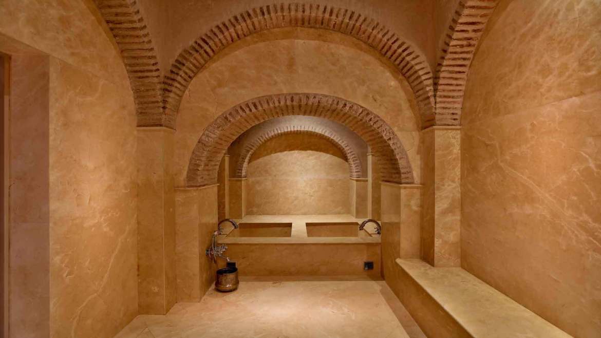 Luxury is at the forefront of this Moorish-style villa in an exclusive gated enclave of Marrakesh. Built to the highest standards by local artisans, the villa boasts 10,764 interior square feet designed for lavish living and entertaining. The public spaces include several palatial reception rooms and a formal dining room, served by a state-of-the-art chef’s kitchen. All five bedroom suites have their own private gardens. The master suite boasts a spa bathroom with sunken bathtub overlooking a walled garden with a heated swimming pool. Furthering the resort ambience is a hammam and massage room, movie theater, outdoor entertaining area with kitchen, and aromatic formal grounds with tranquil walkways, surrounded by lush gardens planted with desert flowers and palm trees.