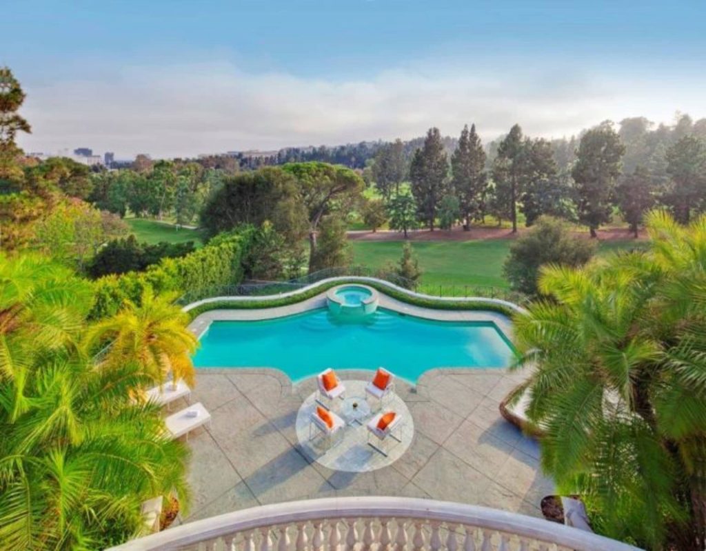 Offering panoramic & unobstructed views of the Bel Air Country Club, this grand estate is the finest property available in Bel Air. On prestigious “Lower Perugia Way” one of only 12 homes that front the golf course. A grand 2 story entry hall w/ sweeping double staircase opens to a vast living rm w/ fireplace & parquet flrs. Pocketing doors lead to an expansive terrace & the golf course beyond. Public rms include the formal dining rm, wood paneled library & gourmet kitchen with all new Viking appliances. Lower Level: Screening rm with bar, gym, sauna & steam shwr plus an oversized guest suite. Upstairs: Master bed w/ views of the golf course & dual marble bths. 2 bdrm suites & a large staff rm combine for a total of 5 bdrms. Additionally there is a state of the art HVAC system w/ sophisticated environmental controls. Set behind gates on just under 1 acre, the grounds offer a motor court w/ ample parking, tropical waterfall, koi pond, glamorous pool w/ spa, and a full putting green. Represented by Drew Fenton.
