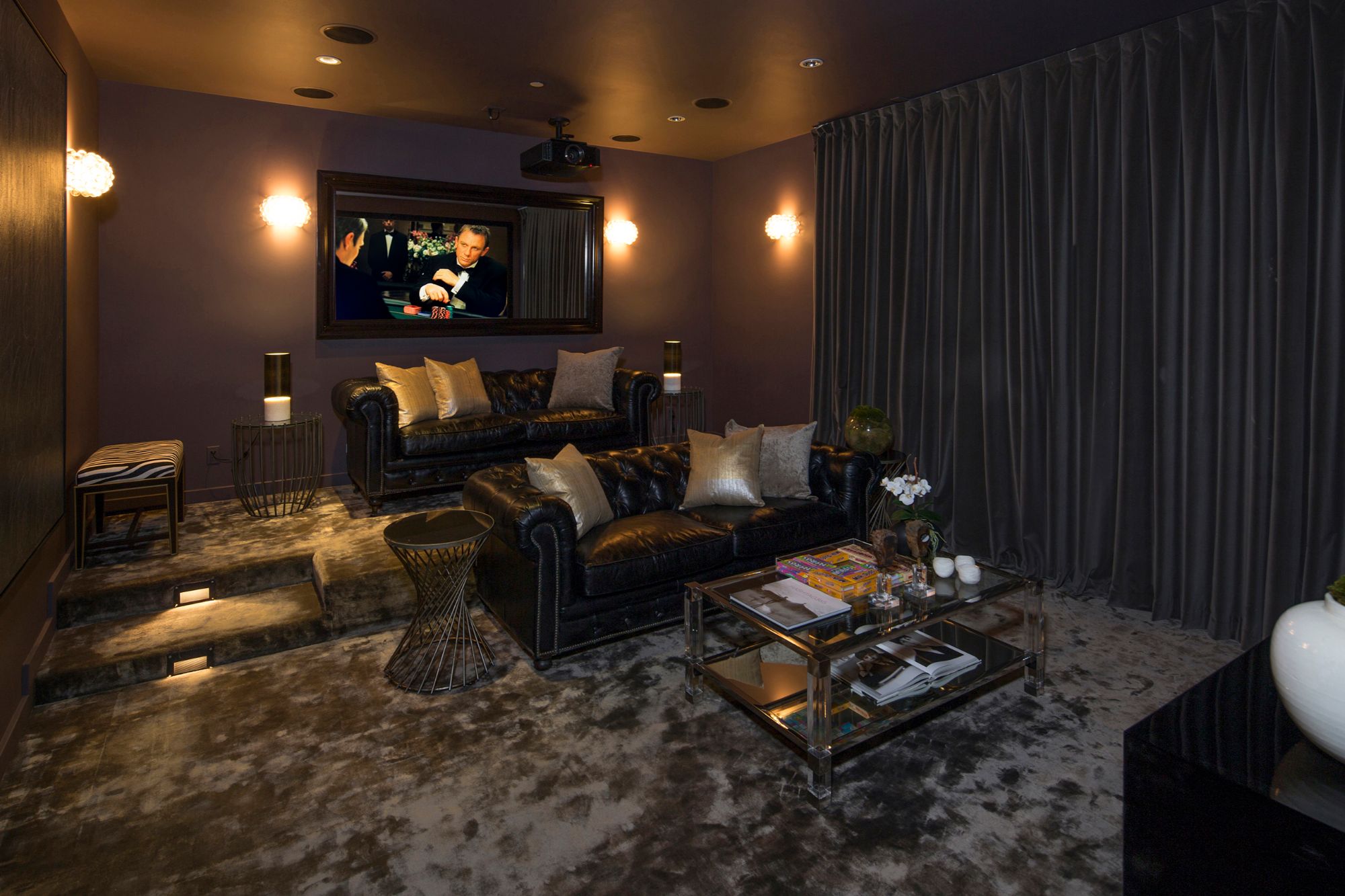 It also features multiple terraces, a pool, a gym, and a home theater. Floor-to-ceiling sliding glass doors are present in some rooms, like the master bedroom and living room, to connect the home’s interiors to its outdoor spaces.