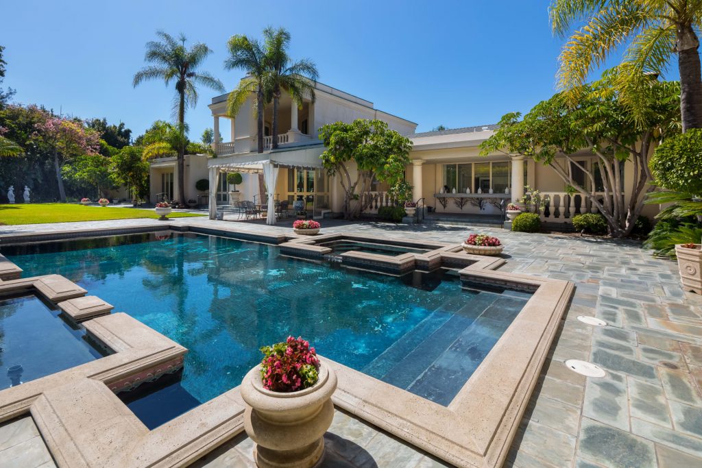 Neoclasical Italian Villa on the most sought-after street in Holmby Hills. With high ceilings throughout, this prestigious property boasts a formal living room, library, and dining room, six bedrooms and nine baths, including an expansive first floor master suite opening onto the gardens.