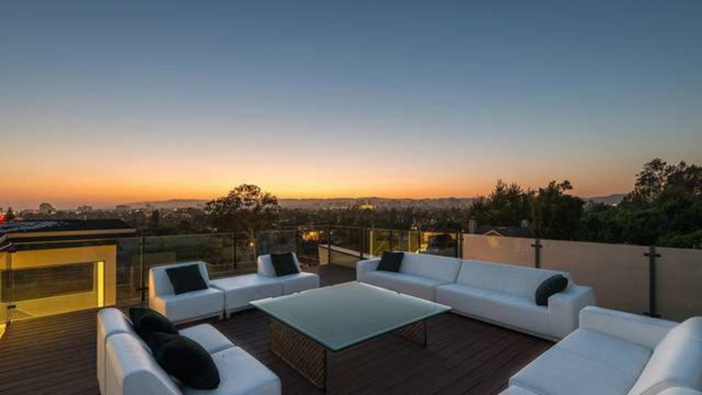Outside, an outdoor living room centers on views of Century City and the Wilshire Corridor.