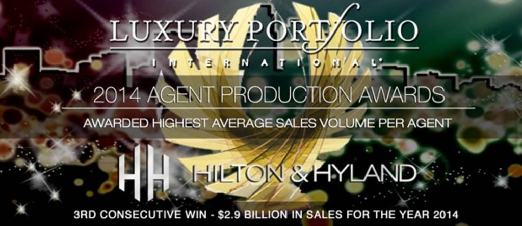 Hilton & Hyland is pleased to receive the award for Luxury Portfolio International’s 2014 Agent Production in the Highest Average Sales Volume per Agent category.