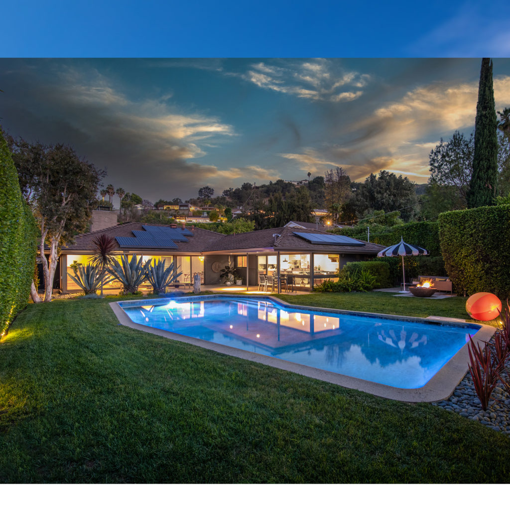 Consider its location on a quiet cul-de-sac, among Mellenthin-designed and other character homes, and it all adds up to being a slice of Mayberry in an urban metropolis, Healey says. “You get the big city feel but you also have lots of space, lots of parking, a cul-de-sac for kids to run around, and a view of Universal Studios in the distance.”