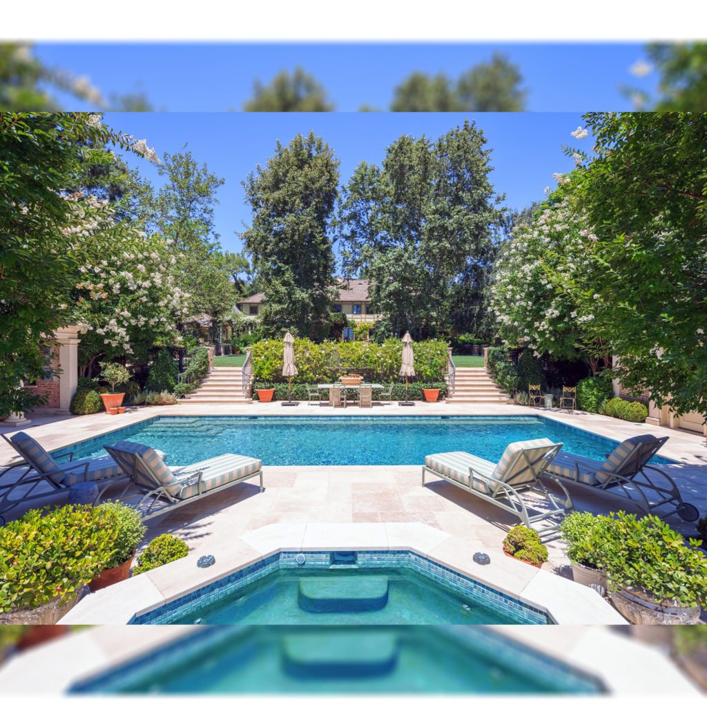 Once owned by French film composer Maurice Jarre, who won Oscars for his work on Lawrence of Arabia and Doctor Zhivago, the main house was expanded and enhanced by architect Oscar Shamamian. Interiors by former White House designer Michael S. Smith lends another layer of sophistication to the home, which expands to more than 16,000 square feet of space when including the outbuildings.