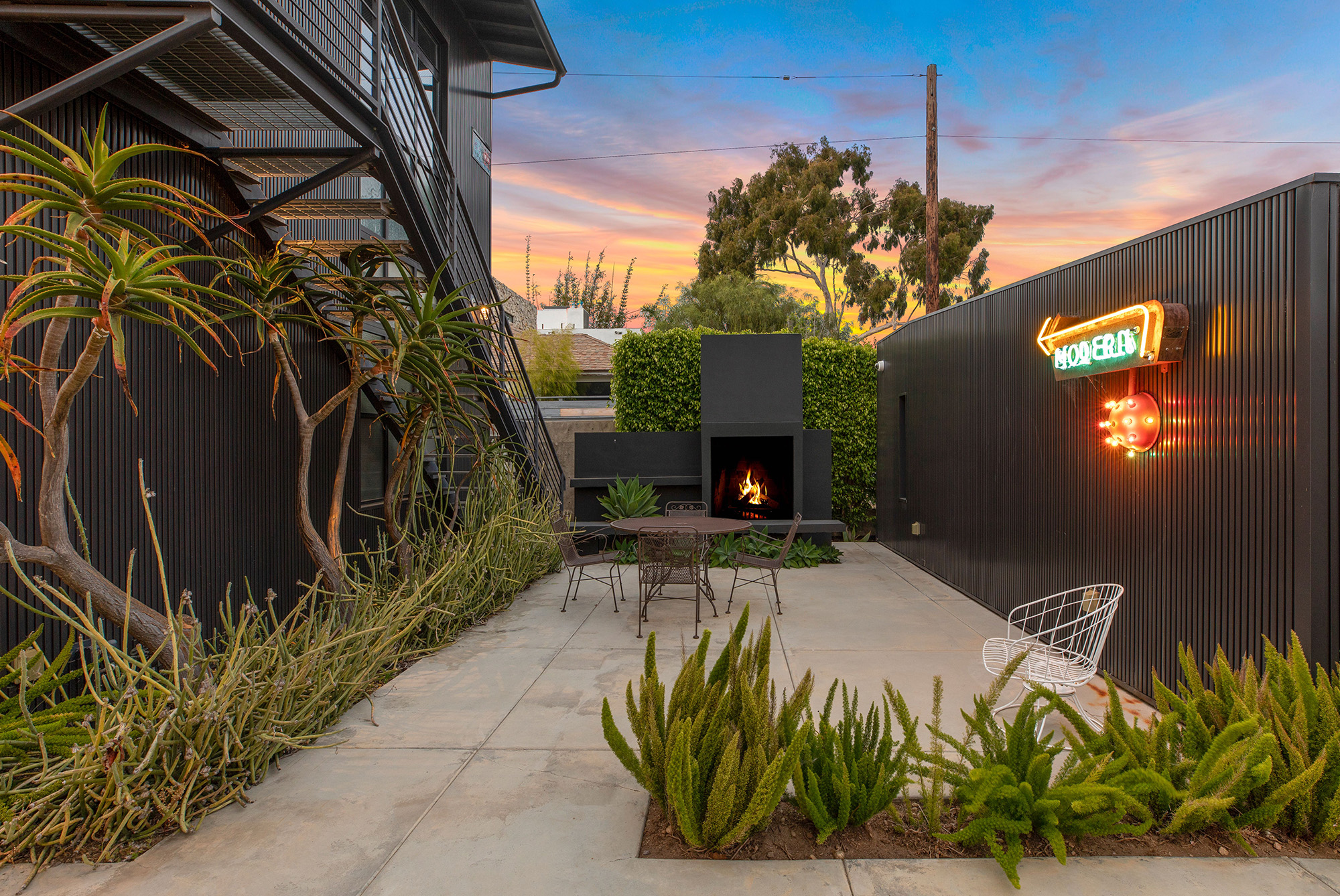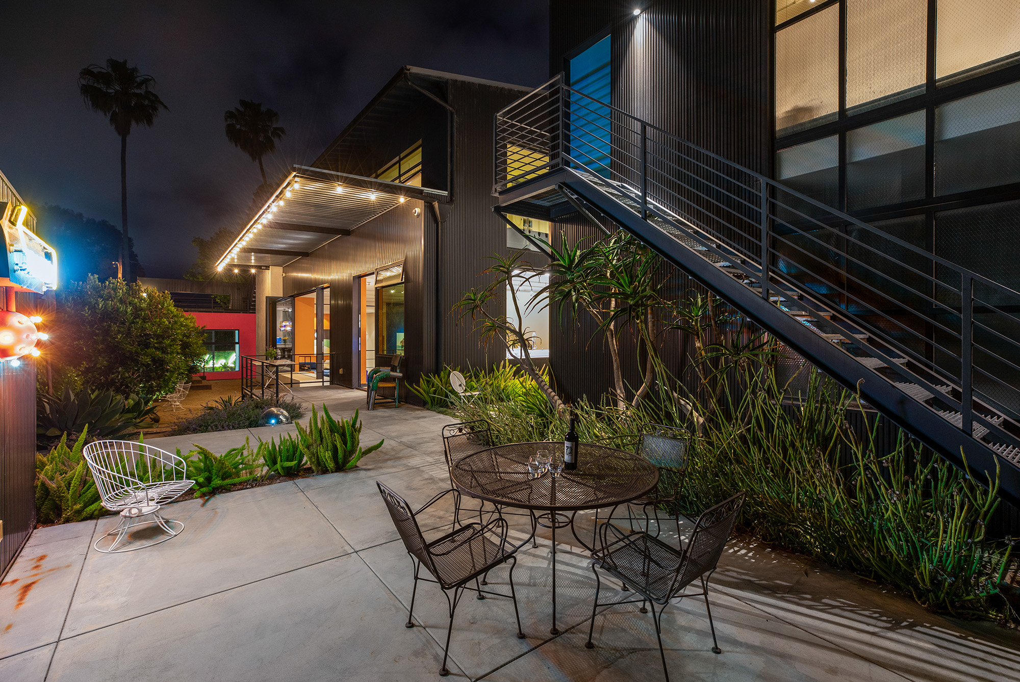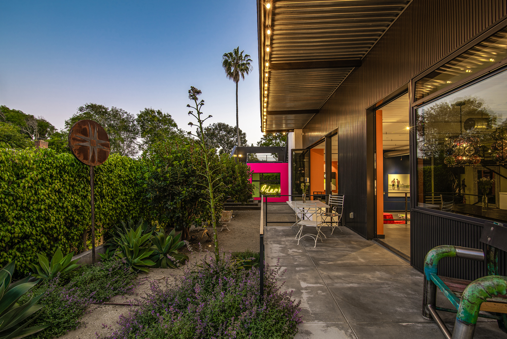 Bursts of pink, orange and green peek out from the sleek corrugated metal shell of the structure. The front of the warehouse-like form was modeled after the loading dock at Bergamot Station, the late 1800s railroad station turned breezy arts center in Santa Monica. A bar located on Austin’s famous Sixth Street also served as inspiration for the industrial vibe.