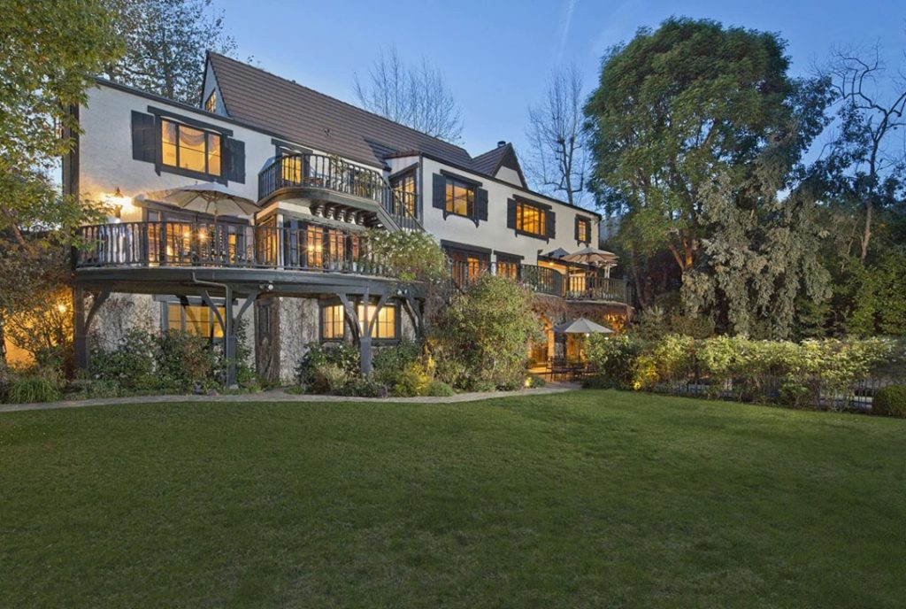 Distinguished Tudor style home on quiet cul de sac with scenic city lights views ideal for a large family. Features include vaulted ceilings with exposed wood beams, stone and brick fireplaces, chandeliers, recessed lighting, French doors on all floors enhance the indoor/outdoor lifestyle. Gated grounds are grassy with a fenced in patio around the private pool and spa located just outside the den. Main level has a large step-down living room with fireplace, formal dining room with built-in cabinets, den with wet bar, and wood paneled library may be used to entertain casual gatherings or professional meetings. The kitchen has modern stainless steel appliances, marble counters, and a large food prep island. Upper level has 2 suites with terraces overlooking the backyard. Master bedroom is light and bright with a cozy fireplace. Master Bath has dual vanities, step in shower, & hot tub. The lower level has 3 bedrooms that may be used as offices, gym, playroom, or maid’s quarters. Represented by Drew Fenton.