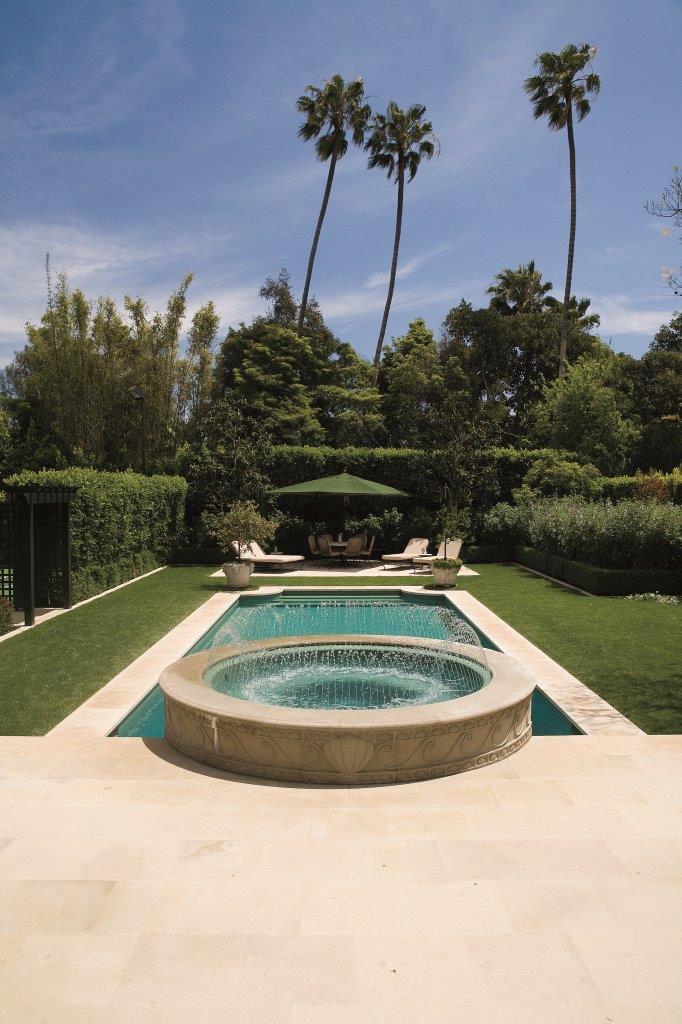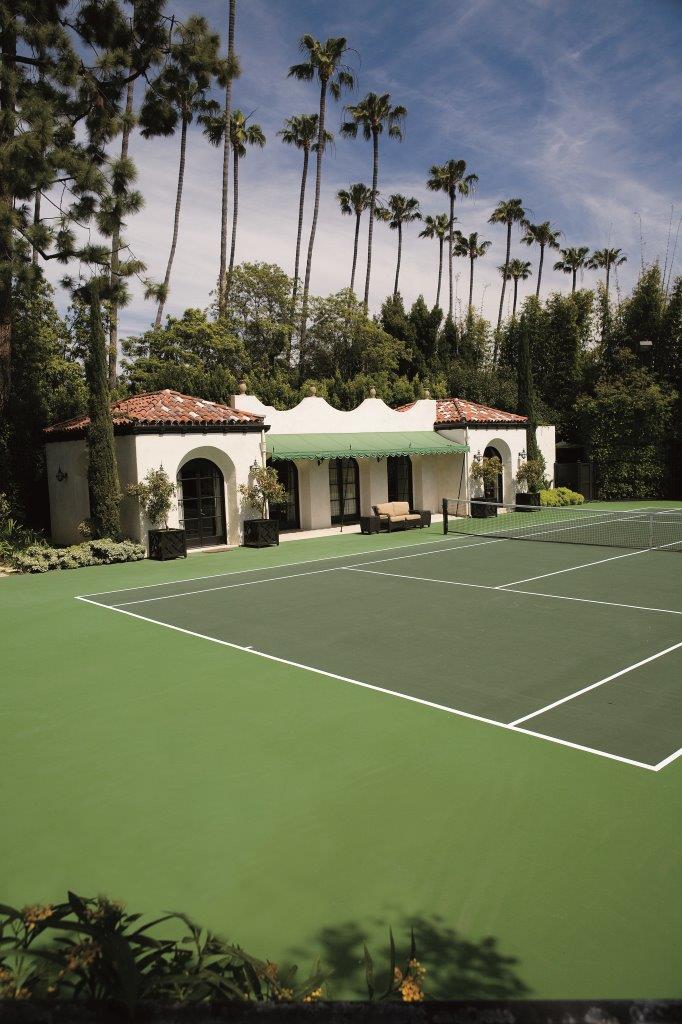 The Beverly Hills Nurseries landscaped the estate. The house looked out over a huge lawn and a Roman-bath swimming pool, which had a mosaic-tiled bottom. Keaton spent $14,000 for forty-two towering palm trees that lined the driveway from Hartford Way to the house. The lushly landscaped grounds included a playhouse replica of the mansion for Keaton’s sons, a tennis court, an aviary, and kennels. The grounds even included a mechanized trout stream that Keaton had planned and engineered himself. The stream could be turned on and off with the simple flick of a switch.