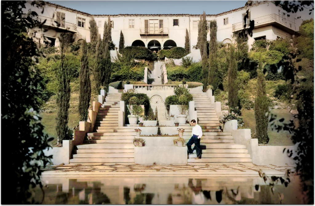 In 1940, Barbara Hutton, the Woolworth heiress known as “Miss Moneybags” and “Poor Little Rich Girl” in the press, leased the house from Owens for a year. She was dating Cary Grant at the time. The publicity-shy couple protected their privacy by meeting at his Santa Monica beach house, or at her rented estate. It was at the estate that Grant threw dinner parties and weekly Sunday gatherings for his friends including Marlene Dietrich, David Niven, Rosalind Russell, and Merle Oberon.