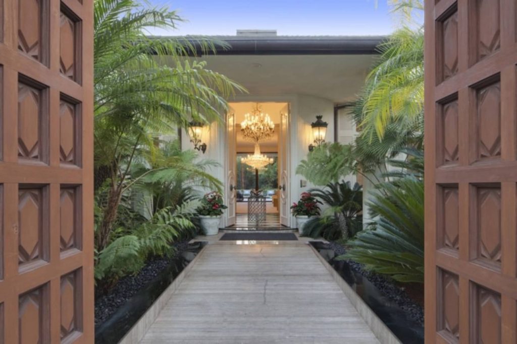 Visitors enter through wrought iron gates and traverse a long, private drive that leads to the French Regency Estate designed by renowned architect, Caspar Ehmcke. Best known for his ability to naturally encapsulate an indoor-outdoor feel, Ehmcke’s simple lines and open living space are the signature features of his style.
