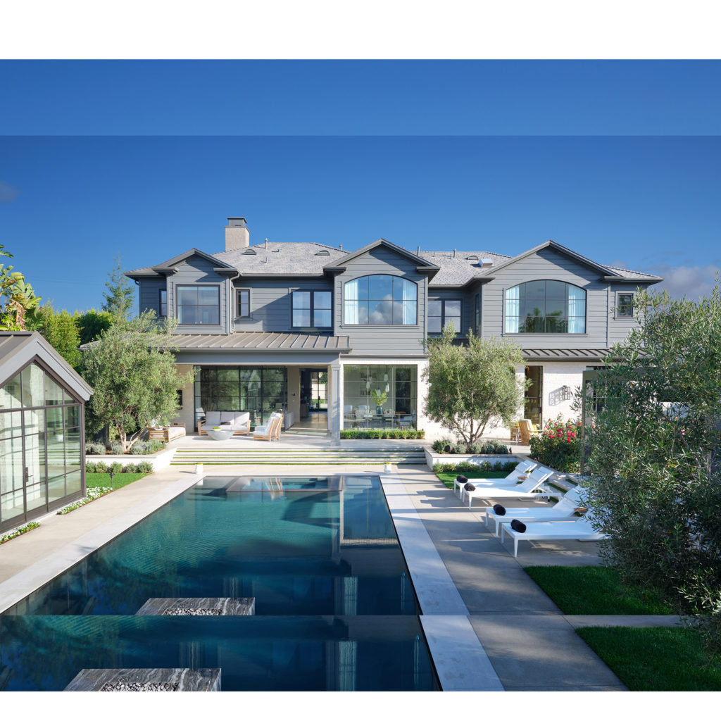 The newly completed home measures about 11,000 square feet with six bedrooms, according to listing agent Drew Fenton of Hilton & Hyland. The backyard has an infinity-edge pool, a pool house, and a dining pavilion.“We wanted to do something that felt very California,” said Mr. Hunter, who has worked on projects for celebrities such as Neil Patrick Harris and Christina Hendricks. “I love everything French contemporary so I say it’s ‘Los Angeles kissed by Paris.’ ” He said he designed the lacquer in the dining room as a spin on traditional French moulding, while the paneling on the back wall of the main living room was inspired by French paneling.