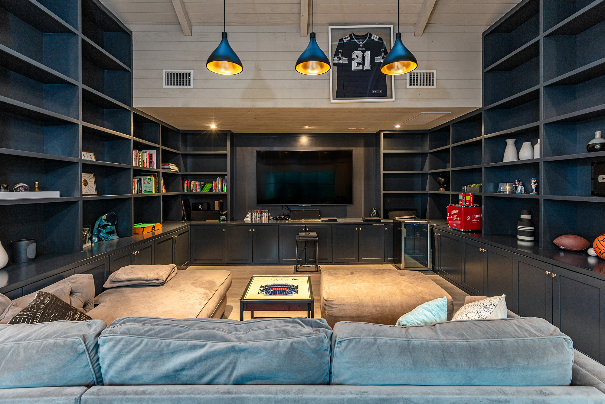 Sitting on about one acre of land, the home is designed to look like a modern farmhouse, albeit with upgraded amenities. The kitchen includes three dishwashers and dual ovens, and there is a 1,690 square-foot recording studio in the backyard. A separate detached backyard building houses a gym.