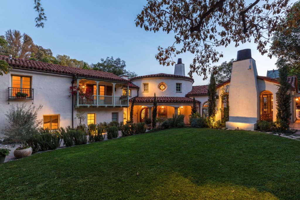 Welcome to Casa de Seis Palmas, where Spanish Revival meets glamour and chic. Secluded and beautifully landscaped for privacy, this majestic celebrity hideaway was previously enjoyed by the late actress Marion Davies, late record mogul Ahmet Ertegun, and model Tyra Banks. Enter beyond the gates where you are instantly transported outside of the hustle and bustle of Los Angeles and into the courtyard of a quaint yet luxurious Spanish villa. Guests are greeted by the sounds of a grand fountain and the fragrance of the Rosemary-lined walkway. With walls enclosing the property, bougainvilleas adorning the second-story terrace and hand crafted tiles designed by artisans of Mission Tiles in abundance, residents have the luxury of enjoying traditional charms and privacy away from it all. Built in 1926, this classic Spanish Revival was renovated without compromising its original architectural elements, making the residence unique and inviting. An abundance of light and travertine stone and maple wood planked floors flow throughout. At the heart of the home is the living room, brightened by vintage French doors and grand windows overlooking the loggia and rolling green lawn. The vaulted wooden ceilings juxtaposed against the modern and Spanish-influenced art are grand in scale and bold in design. With charms at every angle, the residence is intimate but spacious, allowing every space within the home to have its own personality. Upstairs, you will find the master suite with a sitting room and city view, and sumptuous walk-in closet. Two additional bedroom/bathroom suites, library, sun room, formal dining, chef’s kitchen, maids and bath, and outdoor living room complete this romantic secluded compound. The lower level features a guest suite that can double as a media room with private entrance, full bath and closet. An entertainer’s dream, the outdoor kitchen seats 12 and fire-pit flanks the swimmers pool nestled in a walled garden for absolute comfort and privacy. With the Sunset Strip, Rodeo Drive, nightlife, parks and nature in close proximity, the city still feels worlds away, which is refreshing for those seeking refuge from the city. Whether you wish to enjoy the city or unwind in solitude, this tranquil sanctuary offers an endless capacity for enjoying the ultimate Southern California lifestyle year-round. For more on the Spanish Revival, please click here.