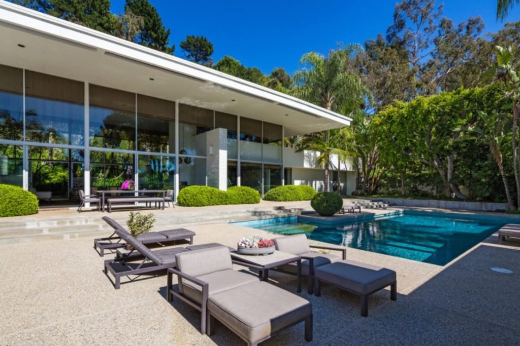 “One of Williams & Williams’s favorite homes ever in Trousdale estates, this home is the quintessential California modern of a Robert Skinner AIA original. One of only a handful of two-story homes in Trousdale Estates,” listing agents Braden and Rayni Williams said in announcing the close. “The green beautiful lushness of the landscaping framed by Steelcase windows and its ultra-high ceilings in the living room coupled with a dramatic entryway make this property an art collector or architectural purest dream. It was an absolute honor to represent this home.”