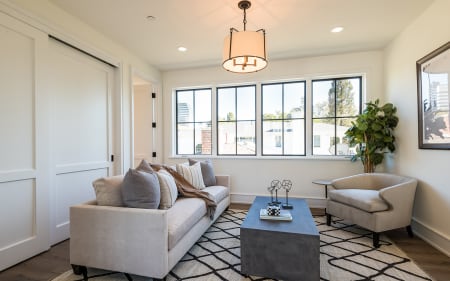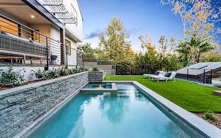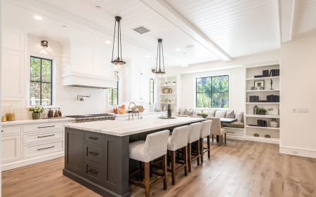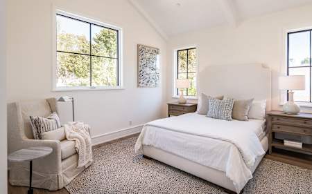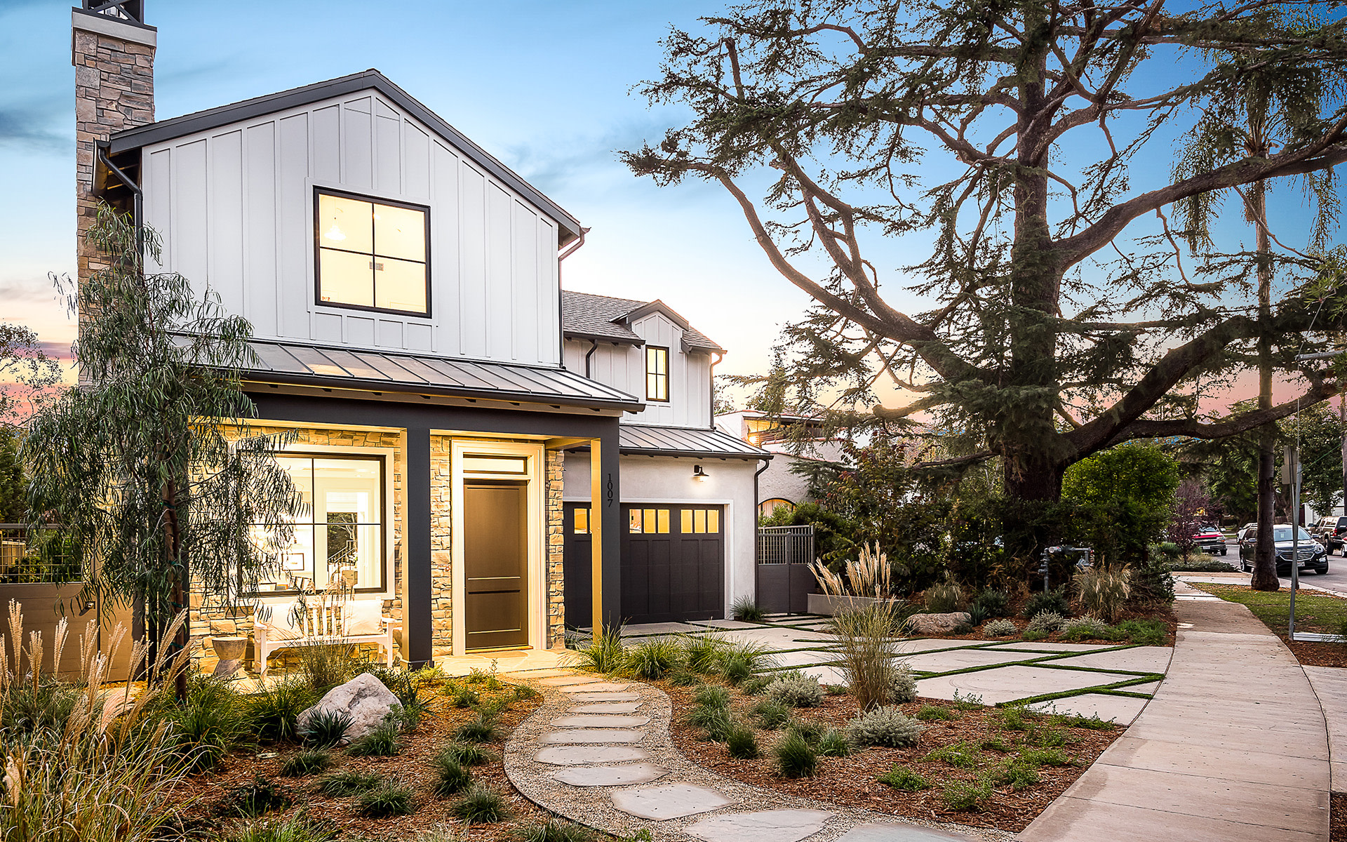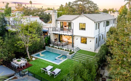 Set upon an oversized sought-after creekside lot in Brentwood, this 2-story home, & full guest house exudes a casual, contemporary farmhouse style and ambiance.