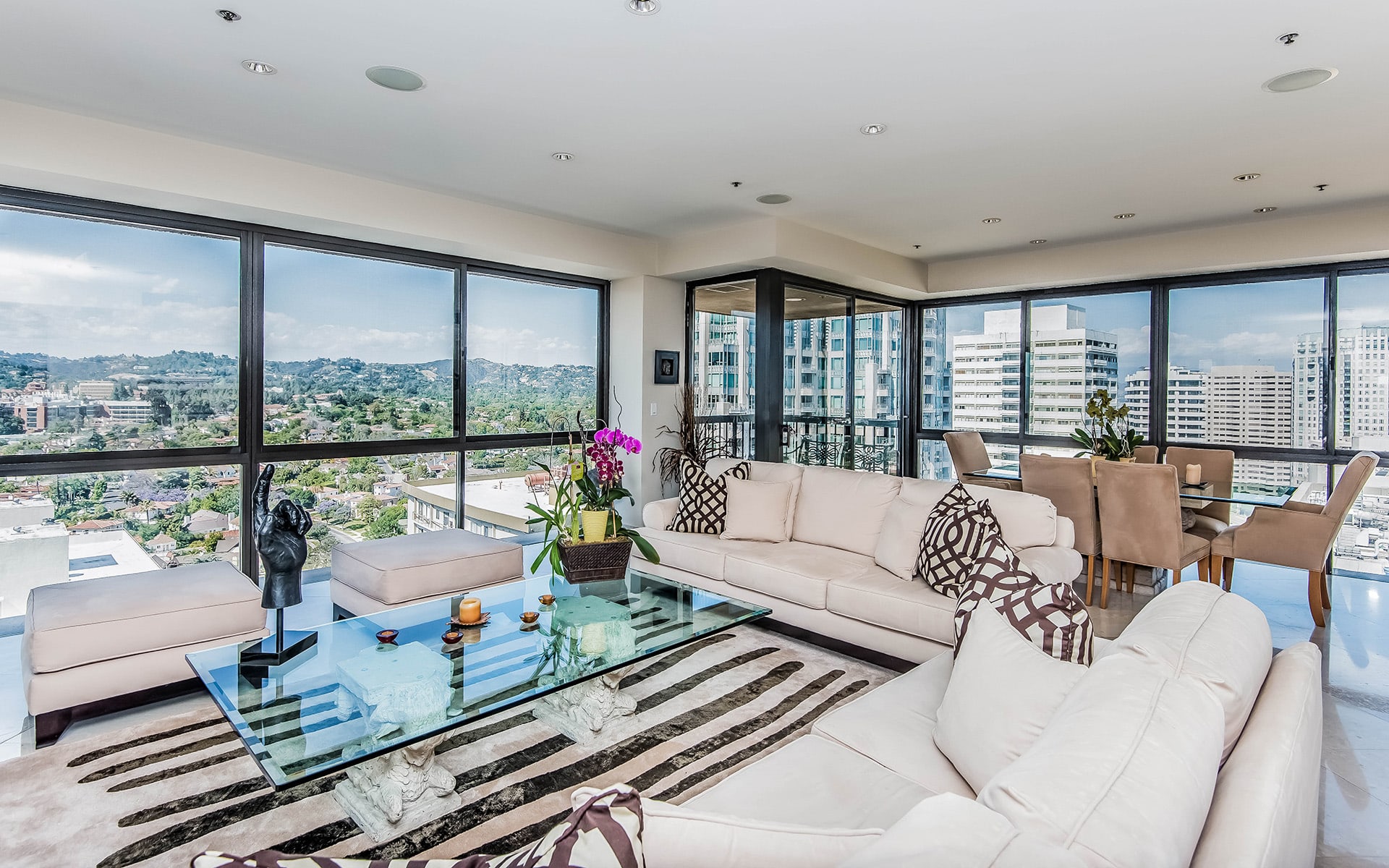 Jetliner Views dominate this beautifully appointed corner condominium.
