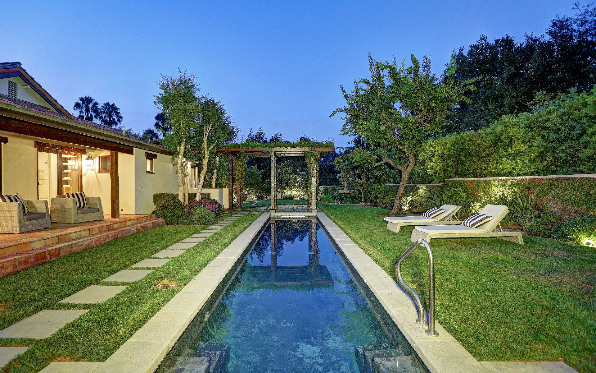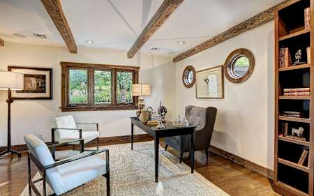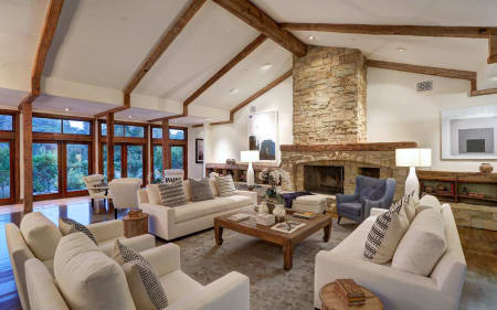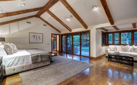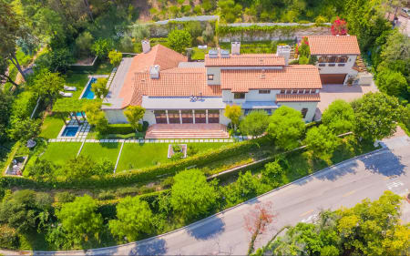 10960 Bellagio Rd is a gated estate that offers a grand living room with wood beam vaulted ceilings, large stone fireplace, eat-in kitchen with sitting area, lap pool and spa, Nest 4-zone heating and cooling system, Control4 audio with speakers throughout and downstairs master with office area. Gorgeous park-like grounds include three separate sit down entertaining areas, one with an outdoor bbq and heaters and another with a fireplace. Guest house above the garage is complete with living room, kitchenette and oversized patio area. Other amenities include: upstairs loft and library with their own fireplaces and maid’s room.