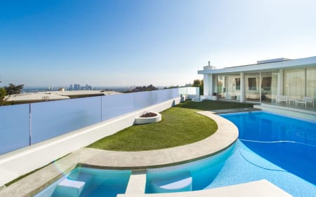 Gated Contemporary with Ocean and City Views. This bright airy home features a large master suite with views, additional 2 bedrooms and bath and an upstairs bedroom/bath for a total of 4 bedrooms, also featured is a brand new remodeled kitchen. The home with its free flowing floor plan reflects the traditional California Lifestyle of the 60’s with a modern influence. The pool and spa give you the sense of looking at a David Hockney painting. Bring your view property buyers. Solar Powered Home.