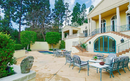 Large motor court situated behind electronic gates preserves the privacy of this home. O. Douglas Phillips architecture has the quality and individuality that you’re looking for. Galleria entry, 18 ft ceilings in the living room. Master is oversized with two very large bathrooms and closets. Beautiful paneled den also with high ceilings, formal dining and charming breakfast room all open to a generous patio. Two additional guest bedrooms and baths as well as two bedroom staff or teenager wing. Lower level is large open room, two cabana baths, bedroom – all opening out to pool and huge pool deck. Some city views. This is a very sophisticated adult home.