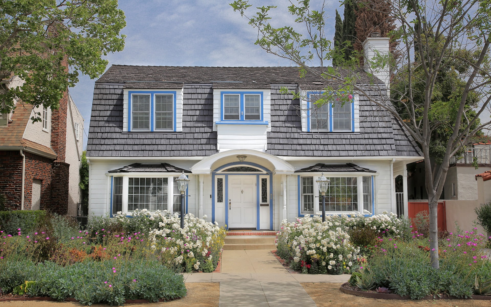 Nestled in the heart of Beverly Hills rests a winsome Dutch Colonial complete with a gambrel roof and wood shiplap siding.
