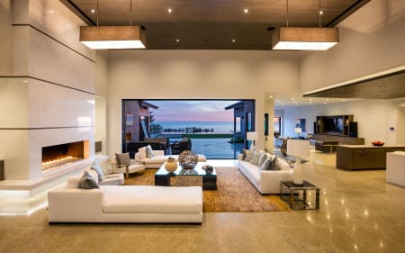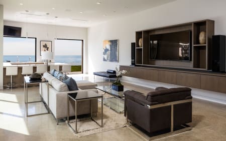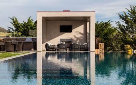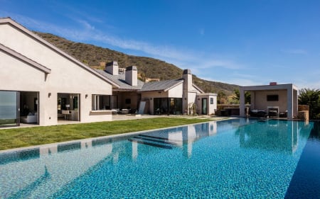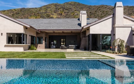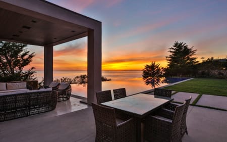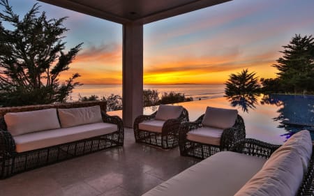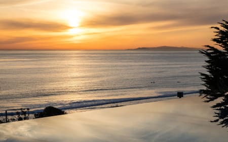 One story, walls of glass, 70ft infinity pool, and full/spa cabana with fireplace, all over looking the Pacific Ocean, Channel Islands and the sunset below.