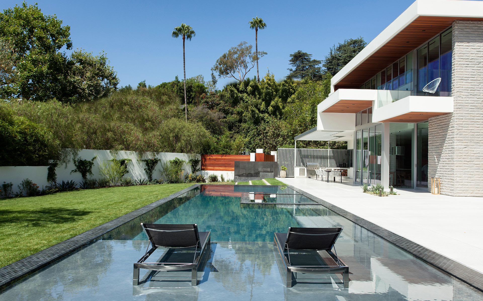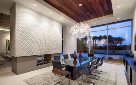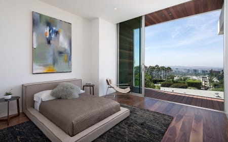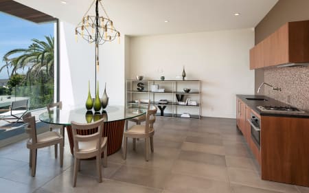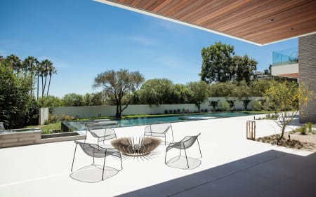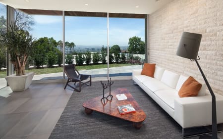 To journey beyond the grand gates and soaring pepper tree hedge of this Hagy Belzberg-designed compound estate is to enter a secluded, resort-like sanctuary where three distinct structures – a Main Residence, Wellness Center and Guest House – summon you forward, beckoning you to journey through their space so they can unveil one surprise after another. Architecturally inspiring, in both appearance and function, 1232 Sunset Plaza radiates a warm, California modern allure draped in sophistication and delight, while conveying an unmistakable sense of strength, volume and boldness. Exterior and interior transitional spaces are rich in fluidity so that the capacity to enjoy and entertain is always sensible and effortless. Interior finishes and design by Erinn Valencich.