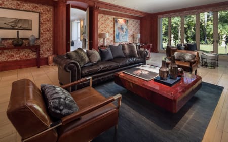 With high ceilings throughout, this prestigious property boasts a formal living room, library, and dining room, six bedrooms and nine baths, including an expansive first floor master suite opening onto the gardens. The second story includes a private office, two large guest suites with views of the hills to Hollywood and a balcony overlooking the large pool and guest house. ** Additional family room in the lower level which could also be a theater.