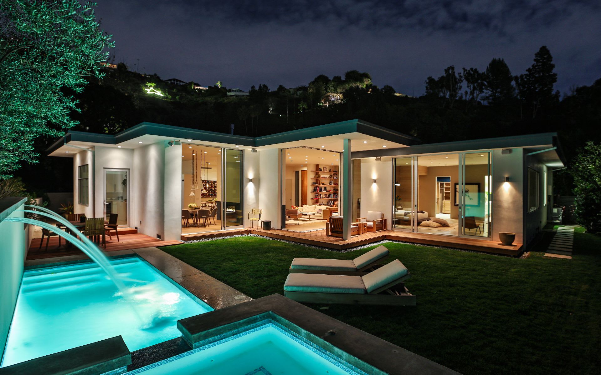 Perfectly situated on a coveted cul-de-sac just above the Sunset Strip, this private contemporary hideaway is flooded with light throughout.
