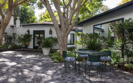 Nestled in Beverly Hills on a quiet cul-de-sac, behind private gates, sits an enchanting, remodeled 4bd/4.