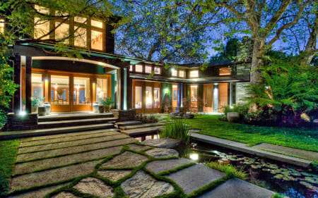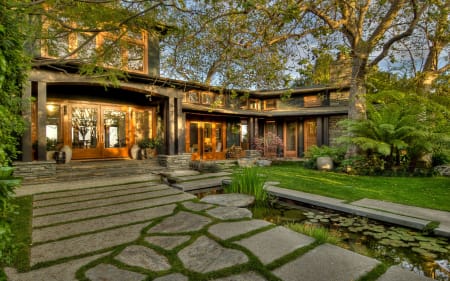 Unique & magnificent estate once owned by famed violinist Jascha Heifetz & later by actor James Woods. Superbly sited on a private/gated 1-acre ridge, the property offers spectacular city-ocean views. The dramatic & lush gardens have been published & are reminiscent of the estates of Montecito w/ mature sycamores, pines & succulents on park-like grounds. The estate is a masterful blend of authentic Craftsman style w/ modern-day architectural elements. The floor plan is open & dramatic w/ soaring ceiling heights, unique details & rich woodwork/finishes. Spacious liv room w/ fireplace, din room w/ fireplace, gorgeous wood paneled library, media/fam rm & state of the art kitchen. Master suite features a frplc, sitting rm, large terrace & 1-of-a-kind spa bath. Most rooms open to the expansive grounds which feature ponds, walkways, large flat grassy areas, pool & spa & a large entertaining pavilion originally designed by Lloyd Wright. Ideal for entertaining on a small or large scale.