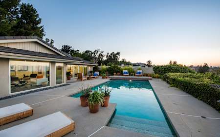 A classic Mid-Century Modern, remodeled and reconfigured with an entirely new plan for today’s living, captures the ever-changing 180-degree views of the mountains and valley. Open plan living/dining with high ceilings leads to a large patio deck, pool, and expansive views. Three gorgeous new bedrooms are en-suite, with new baths and two closets each, plus a 4th bedroom/den or office, and a bath with shower for your pool guests. Remodeling includes a new tile roof, grey oak floors, new plumbing and electrical. Expanded open kitchen/family room with large island. All thoughtfully appointed in serene colors, textures, and finishes that will satisfy the most demanding aesthetic. Brentwood & Bel Air adjacent, with easy access via Mulholland and Sepulveda to Beverly Hills and Westwood. Close to the Skirball Cultural Center, Lanai School District.