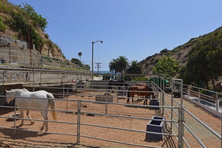 33 magical acres, 8 horse stalls and turnout several acres level, a small 3 bedroom 2 bath ranch home. 600 feet frontage on Will Rogers' Beach with unobstructed Queen Neckless views, year round streams. This property is almost one mile long. Best suited for one large estate. Nothing compares.