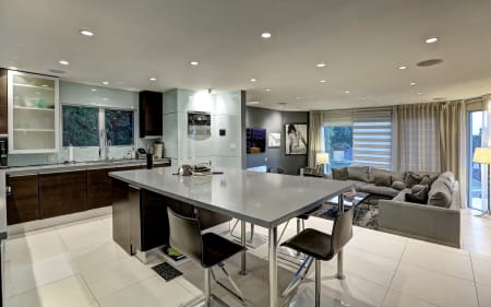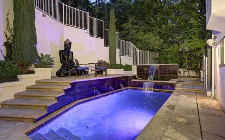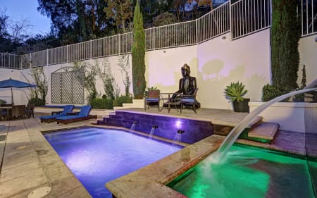 This 3-story, four bedroom, five bath contemporary was recently remodeled in 2009 and features open floor plan on the main level, expansive master suite, large ensuite guest bedrooms and a gourmet kitchen w/top of the line appliances. With Integrated Control 4 system and smart home features throughout, a professional quality twelve person screening room, salt water pool and spa, and views from every room this home is perfect for entertaining.