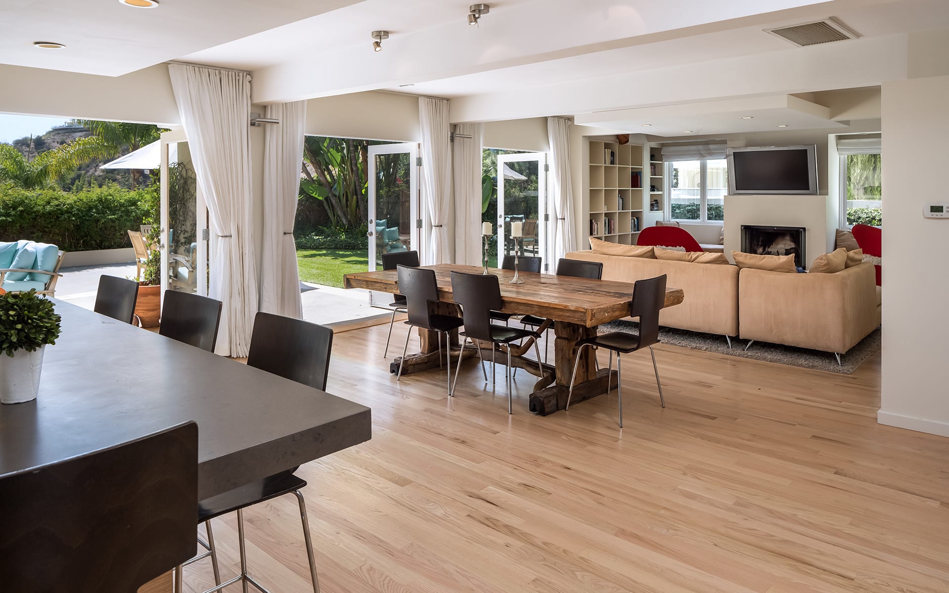 Located on a walled and gated oversized lot, this fabulous one-story contemporary villa is situated on the quiet and serene upper portion of Rising Glen.