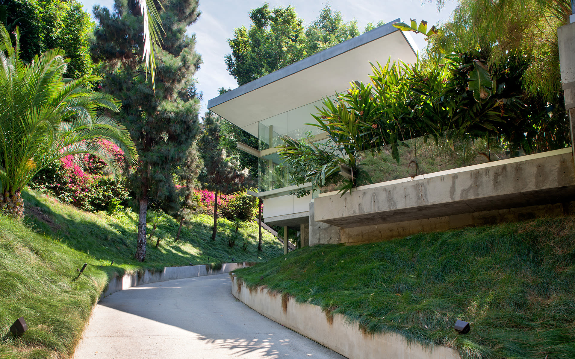 Perched high above a long gated driveway is an exceptional architectural triumph designed by Hal Levitt.