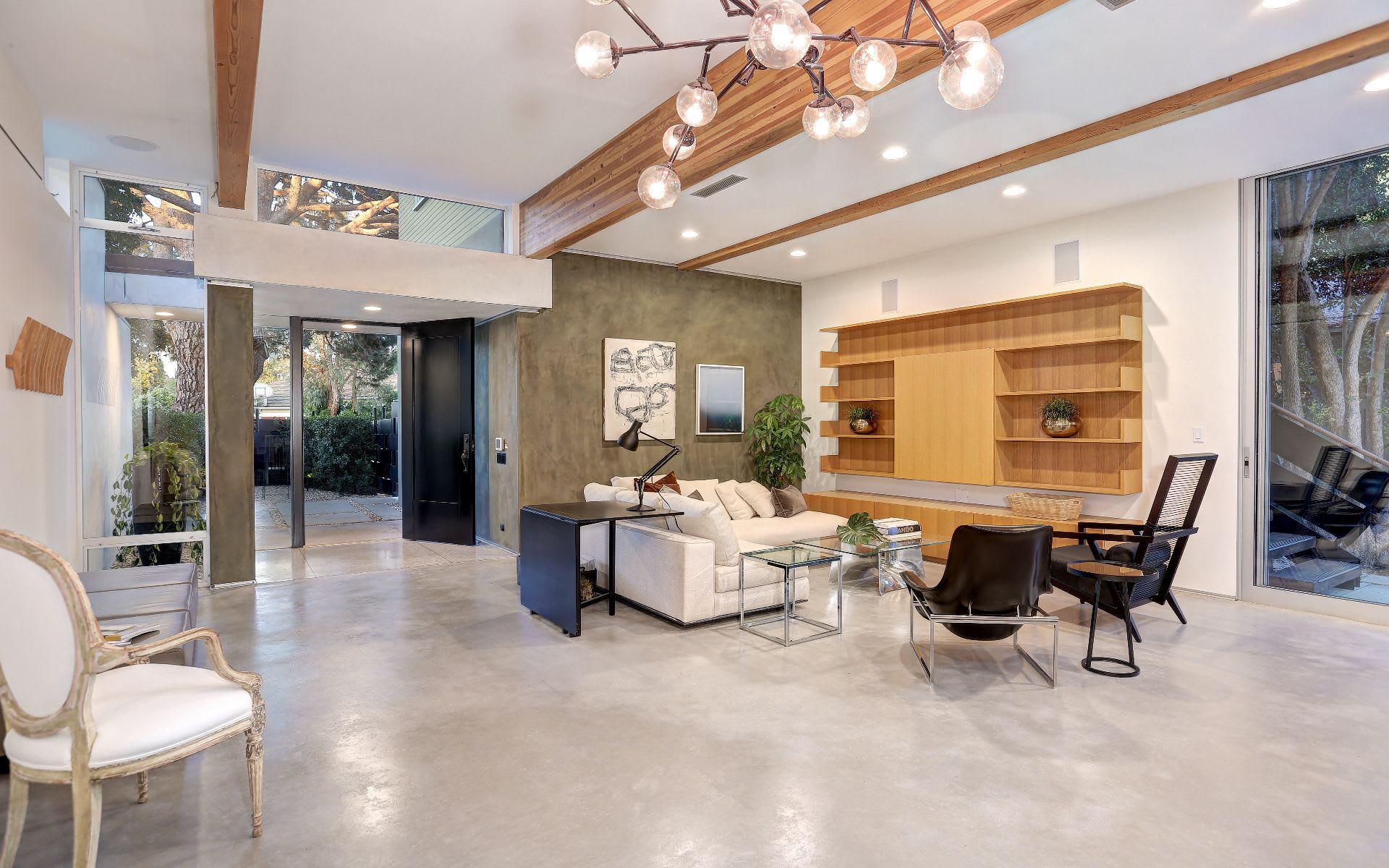 Floor to ceiling glass sliding doors that welcomes the outside in.