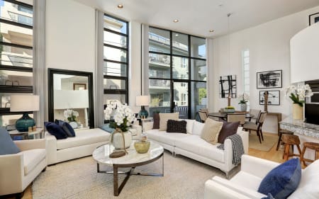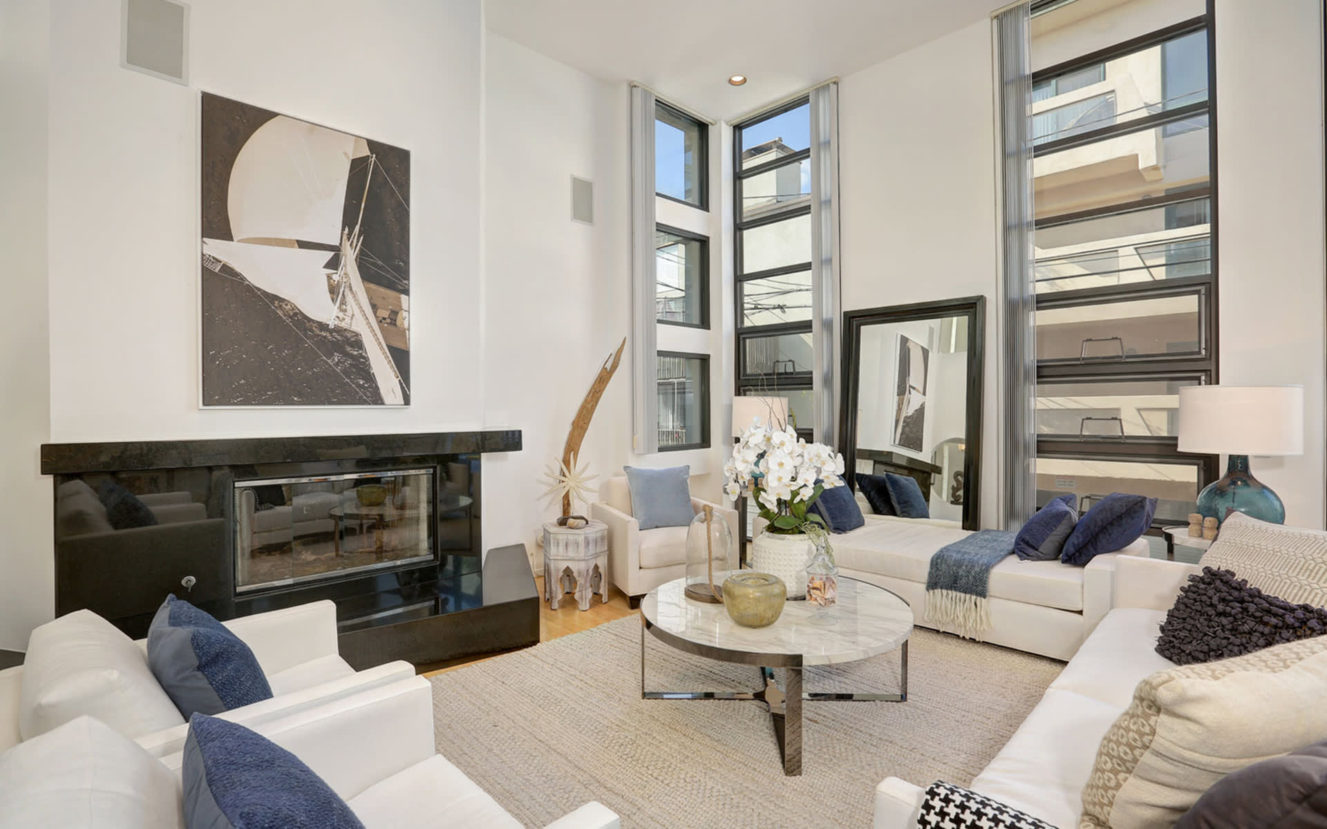 Stunning architectural townhome with whitewater ocean views from the private rooftop deck located in the Marina Peninsula.
