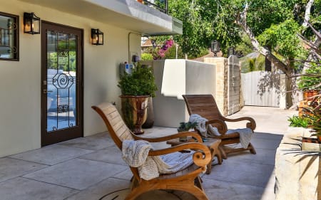 Enter through a private and tranquil courtyard to a light and bright turn-key home. Custom cook’s kitchen with Viking range, Sub Zero, and Miele appliances. This open floor plan has the perfect flow for entertaining. Spacious master suite upstairs with vaulted beamed ceilings, imported stone fireplace and two large decks overlooking the Pacific. Spa-like master bath with freestanding oval tub and walk-in steam shower. There are two additional bedroom suites with baths. There is ample parking with full two car garage and driveway parking for four cars. Hardwood floors throughout, top of the line finishes and available immediately either furnished or unfurnished.