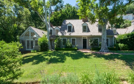 Charming light-filled spaces include a wonderful kitchen, formal dining room, living room, den and spectacular sun room. Upstairs features 4 bedrooms including a dream master suite with fireplace and gorgeous bath. Outside, a beautiful pool and spa are set amongst the magnificent grounds. The charming guest house is perfect for a home office or studio. A truly magical setting in one of the most desirable locations in BHPO.