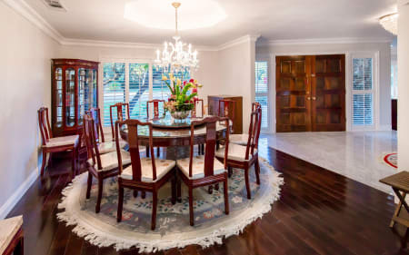 From the moment you walk through the double entry doors, this light filled home feats an oversized formal living room.