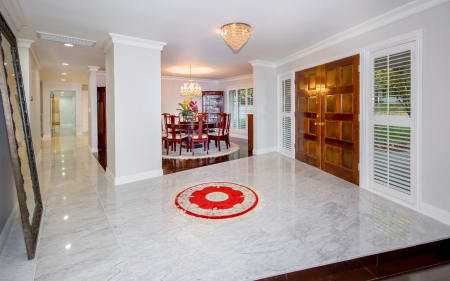 Large custom imported Euro kitchen by Bauformat is loaded w/ a Teppanyaki grill, &Caesarstone counter tops w/ a large center island that opens to the massive family room. A large drop down projection screen, a custom wet bar w/ a Ceasarstone waterfall countertop, & a set of bi-fold doors that completely open up to the entire backyard make this the perfect hang out room. Large master feats a large walk in closet & large slider that leads out to the backyard. A spa like bath rivals any 5 star hotel w/ a floating soaking tub & a large dry sauna. Massive backyard highlights a sparkling pool and tons of deck space. Updates include New HVAC system including ducting, LED recessed lighting throughout the entire home, 24×24 Carrera marble floors, custom shutters, &updated baths w/ Grohe fixtures. Located by Carver elementary, this is truly a turnkey property ready to call home!