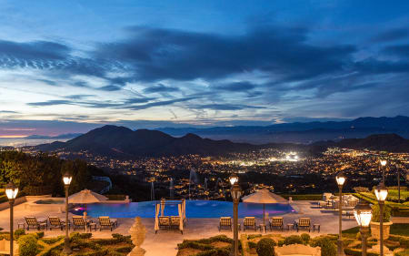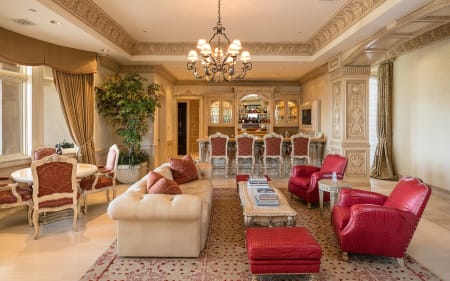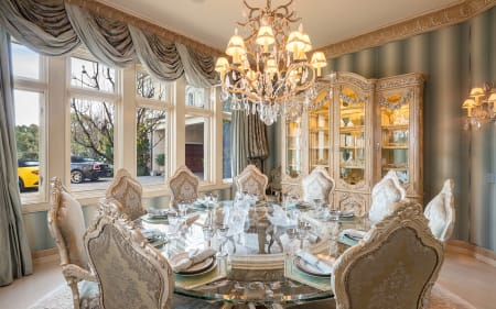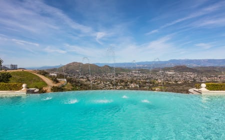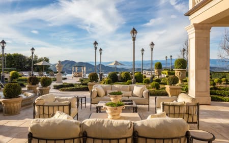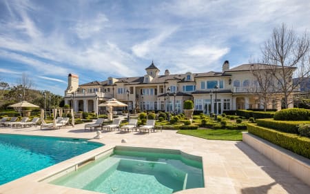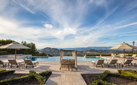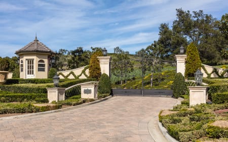 Redesigned and renovated by designer Roy Sklarin, this luxurious French Formal estate is beautifully situated on over 20 spectacular acres of land. The palatial residence features 14,000 square feet of lavish living space, 7 bedrooms, 13 bathrooms, comprised of a deluxe master bedroom suite with dual baths, walk-in closets, a gourmet double-island kitchen and pantry, a wine connoisseur's tasting room, a theater, a gym, a separate guest quarters. The property is being offered furnished with its custom-made furniture, chandeliers, hand-made rungs and draperies. The private paradise boasts beautifully landscaped lawns, Magnolia-lined limestone walkways, hand-carved fountains, a tennis court, and a resort-style infinity pool with breathtaking panoramic views of the city lights and hillside. This magnificent Hidden Valley property offers a rare opportunity, minutes from Westlake Village, adjacent to the world-famous Sherwood Country Club and a short drive to the beautiful beaches of Malibu.