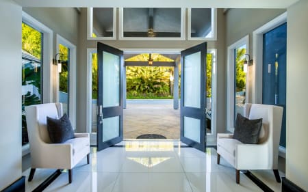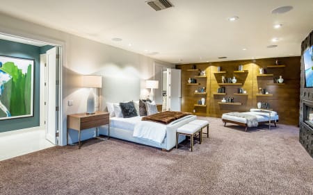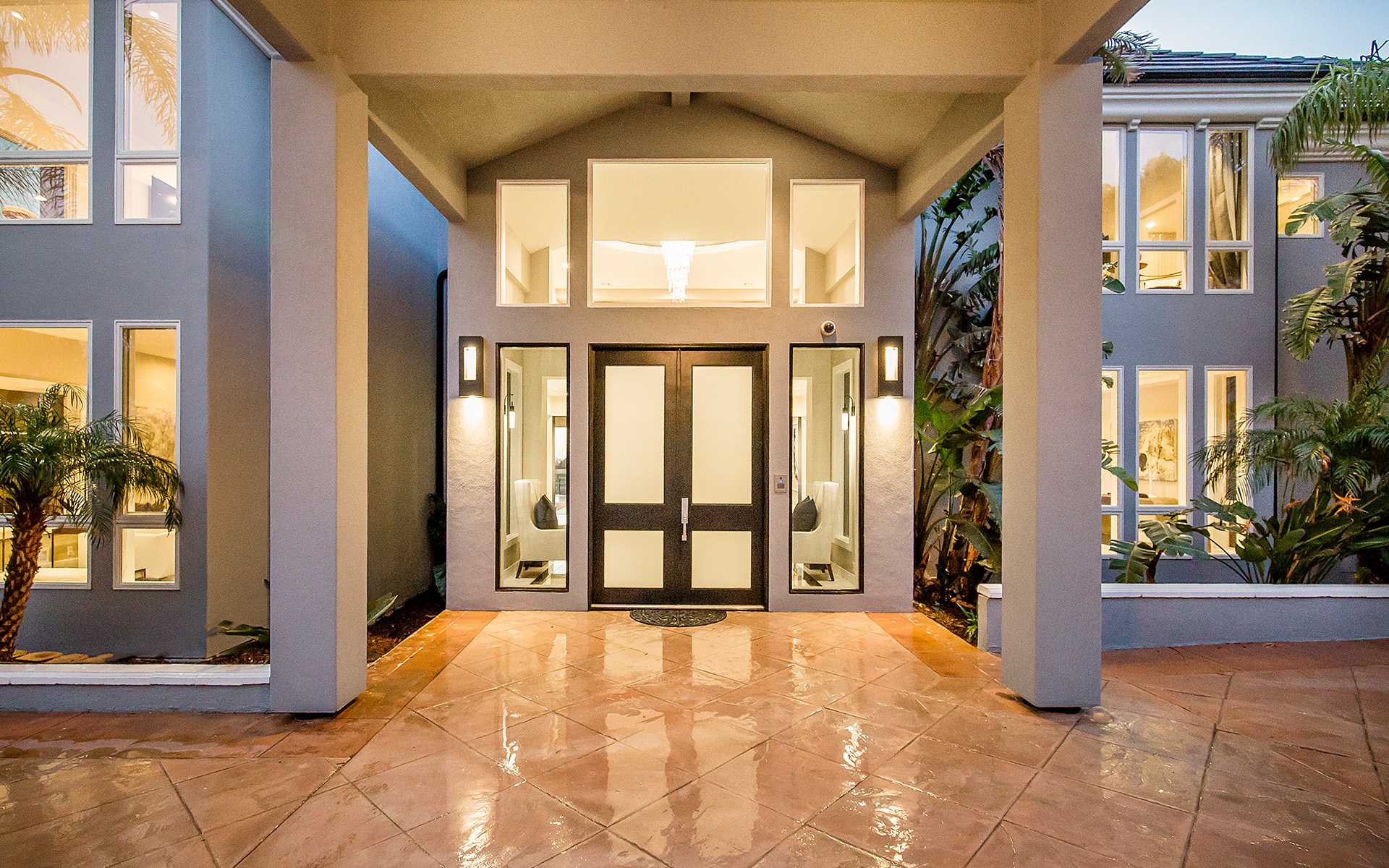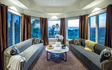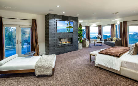 Enter thru a private gated driveway to a motor court with an abundance of parking. The 2 story entry of the remodeled ocean view Celebrity estate is flanked by a formal dining room that can seat 18 + and a formal living room. The center of the house is the family room with a large TV viewing area, a restaurant bar and space for a pool table and a game table. The kitchen has a large breakfast area and overlooks the pool area and ocean. The first level also has a private office and a large guest suite. The 2nd floor features a grand master suite with panoramic coastal views, a sitting area and a wrap-around terrace. The master bathroom is world class with a freestanding tub, sauna, double size shower, amazing ocean views and phenomenal walk-in closets. The 4 additional bedrooms upstairs are all very spacious with walk in closets and well-appointed bathrooms. A gym & professional screening room, round out the 2nd floor features. Guest House.