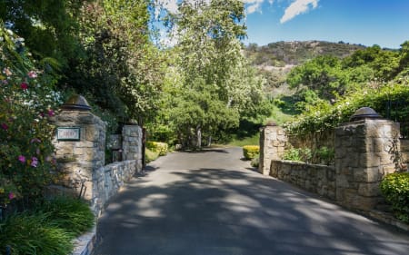 Selling to the highest bidder at or above $14.5M. Surround yourself in tranquility and luxury on 48 spectacular acres at Amber Hills, one of the most exclusive luxury compounds to ever come on the market in Brentwood. Located in magnificent Mandeville Canyon – an area well-known for horseback riding and botanical gardens – this impressive compound awaits, enveloped by the stunning Santa Monica Mountains.