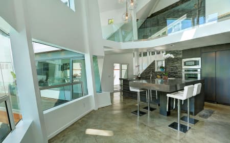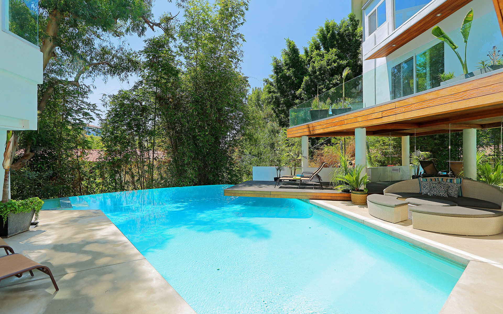 Located in prime Beachwood Canyon, this extremely private architectural modernist home features an open floor plan that is highlighted by walls of glass, concrete flooring throughout.