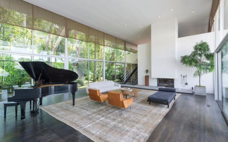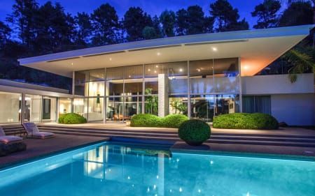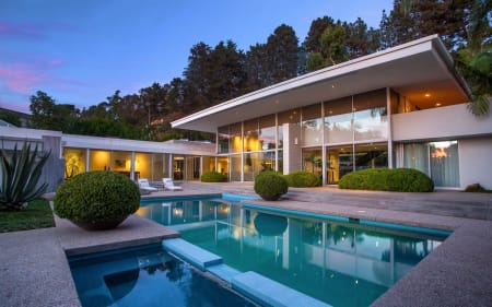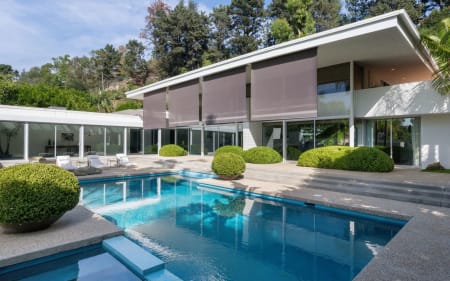Gated on a quiet Cul-De-Sac in coveted Trousdale Estates, this property is perfect for the connoisseur who wants to live in a work of art. Skylights flood home w/natural light. Open floor plan w/terrific indoor outdoor flow. Pool/garden views from every room. Breathtaking living room w/dramatic 2 story floor to ceiling windows & fantastic double sided fireplace. Gorgeous gourmet kitchen w/every conceivable amenity w/attached family room. Swoon-worthy master suite w/sitting area & enormous walk in closet. Richly appointed master bath rivals any resort. 3 additional amazing en-suite bedrooms. State of art screening room. Incredible office loft. Fab pool area is CA dream w/outdoor fireplace & multiple seating areas. Surrounded by lush, mature trees for privacy. A truly rare and special trophy property that could not be replicated today.