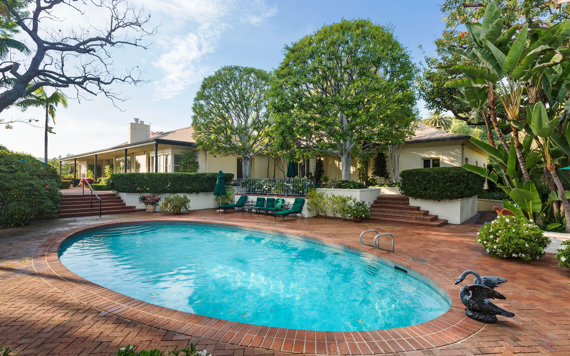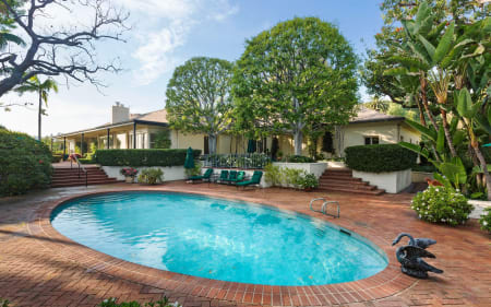 The legendary William H. Doheny Estate occupies over 3 ½ usable acres, four blocks North of Sunset Blvd. Unparalleled privacy for a property of this magnitude, the home of over 10,000 sq. ft is a two-story Hollywood Regency with lower level recreational billiards rooms, staff quarters, storage and basement. There are 8 bedrooms, and 14 bathrooms, with a long private and gated driveway with parking for approximately 15 cars. The home benefits from beautiful city and ocean views. Property is also listed with Tyrone McKillen and Mich Rogers.