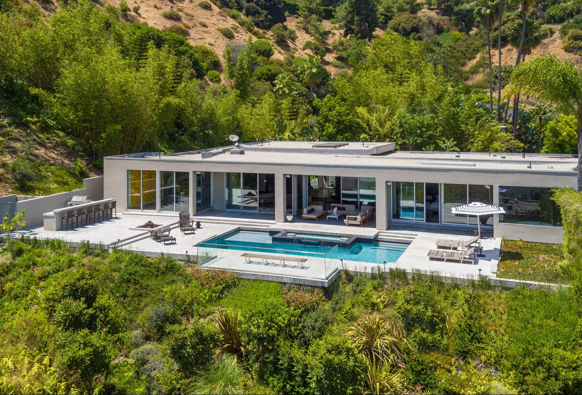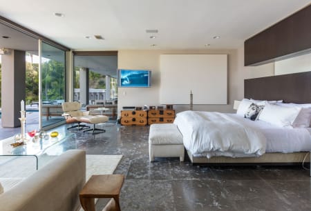 A grand sky-lit entrance greets you to an exquisitely appointed Mid-Century Modern marvel by famed designer Michael Marquez. A seamless indoor outdoor living space, encompassed by panoramic city views, set the stage for this ultimate entertainer’s paradise. Four generously appointed suites, each with en-suite baths, grant you the most luxurious lifestyle. Your master suite captures the glamorous essence of Trousdale: crafted with the highest standard of materials and situated on the grandest viewpoint, making for the ultimate serenity to awake to. Floor to ceiling windows cascade the southern facade, bathing every room in the best of Los Angeles’ cityscape. The outdoor lounge is fit for the most tasteful soirée: a swimmer’s pool, fire pit & barbecue complete a retreat that is unmatched. Come by and experience this lifestyle for yourself. Life is one grand, sweet song, so start the music.